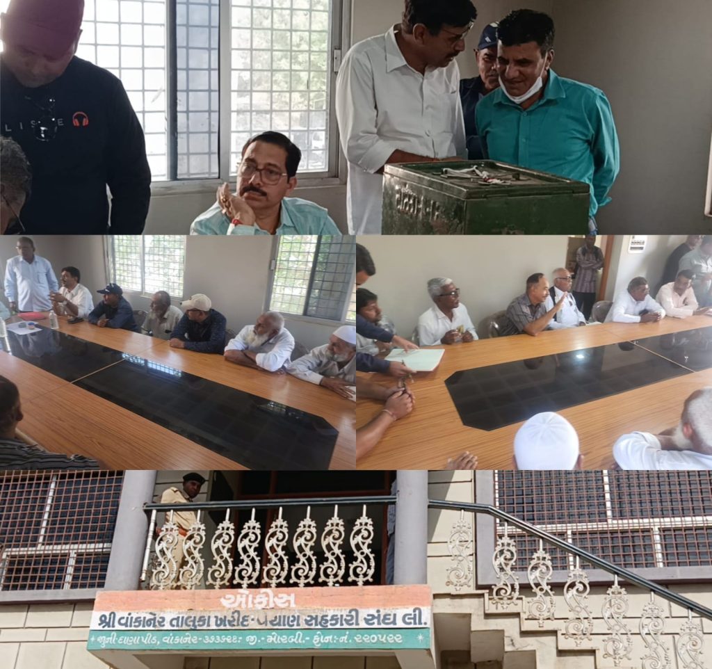 વાંકાનેર તાલુકા ખરીદ વેચાણ સહકારી સંઘ લિ.ના પ્રમુખ અને ઉપપ્રમુખની વરણી માટે આજે ચૂંટાયેલ સભ્યો દ્વારા મતદાન કરવામાં આવ્યું હતું, જેમાં બેંકના પ્રતિનિધિની ઠરાવ બાબતે મામલો હાઈકોર્ટમાં હોવાના કારણે પરિણામ અનામત રાખવામાં આવ્યું છે, જેથી મતદાન પેટીને સીલ મારી હાઇકોર્ટના ચુકાદા બાદ મતગણતરી કરવાનો નિર્ણય લેવાયો છે.