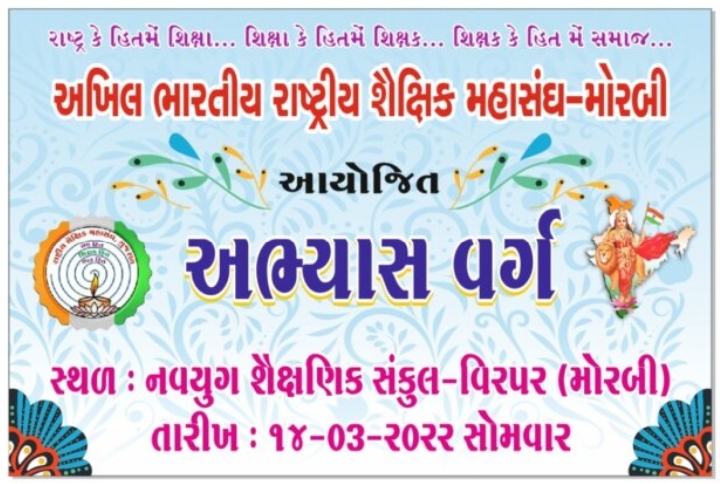 અખિલ ભારતીય રાષ્ટ્રીય શૈક્ષિક મહાસંઘ એટલે રાષ્ટ્ર કે હિતમે શિક્ષા.શિક્ષા કે હિતમે શિક્ષક.શિક્ષક કે હિતમે સમાજના ધ્યેય સૂત્ર સાથે શિસ્તબધ રીતે કાર્ય કરતું સંગઠન છે, સંગઠનમાં કાર્યરત કાર્યકરો,મંડળ સંયોજકોએ કેવી રીતે કાર્ય કરવું? એ માટે નવયુગ શૈક્ષણિક સંકુલ વિરપર મોરબી ખાતે આગામી તા.14ને સોમવારના રોજ પૂર્ણ દિવસના અભ્યાસ વર્ગનું આયોજન કરવામાં આવેલ છે.જેમાં અભ્યાસ વર્ગનું મહત્વ,કાર્યકરોની મનોભૂમિકા,સંગઠનની કાર્ય પદ્ધતિ,પ્રચાર-પ્રસાર સંઘ વિચાર,પરિવાર અને આર્થિક સૂચિતાની નવી શિક્ષણનીતિ,શિક્ષણના પડકારો,હોદેદારોની જવાબદારી,સંગઠનના કાર્યકર્તાઓની અધિકારીઓ સાથેનો સરકાર સાથેનો વ્યવહાર વગેરે વિષયો પર માર્ગદર્શન પૂરું પાડવામાં આવશે.