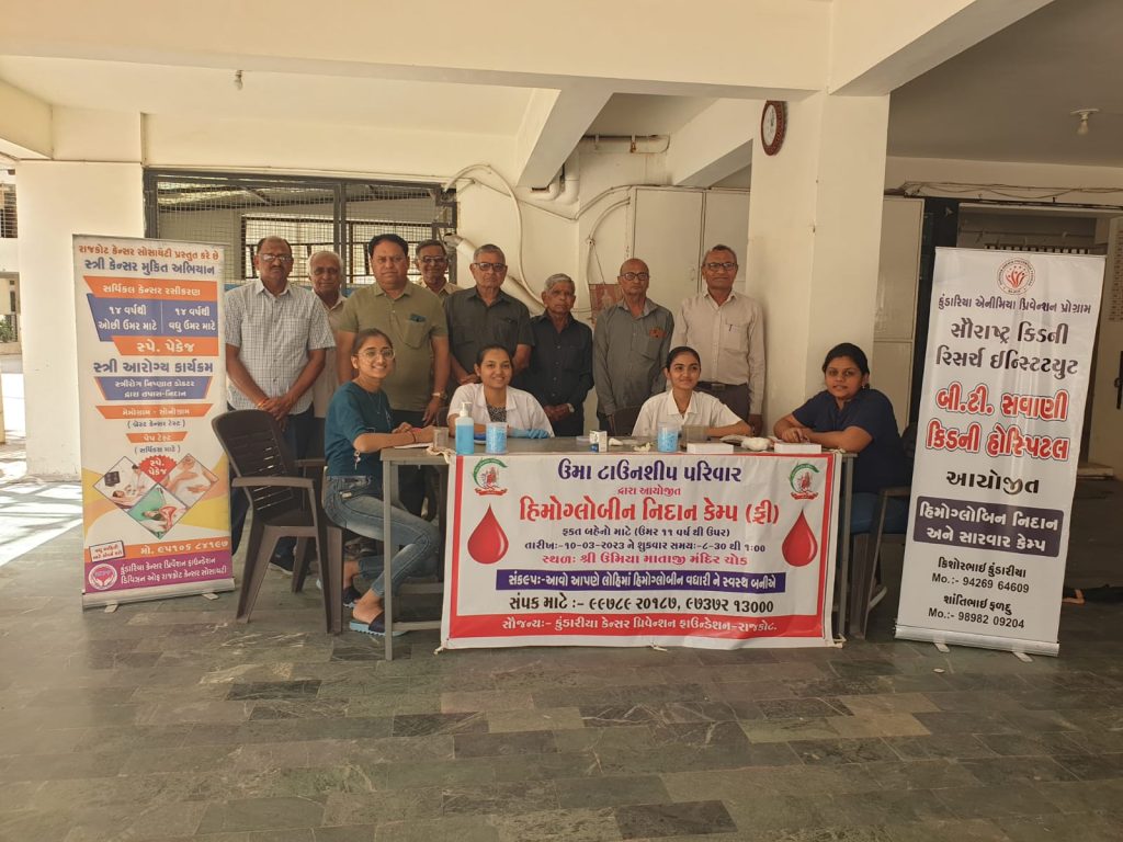 ઉમા ટાઉનશીપ પરિવાર દ્વારા આયોજીત નિઃશુલ્ક હિમોગ્લોબીન તપાસનો કાર્યક્રમ રાખવામાં આવ્યો હતો. જેમાં ઉમા ટાઉનશીપ ની બહેનો,ઉમા વિદ્યાસંકુલ, યુનિક સ્કૂલ, ભારતી વિદ્યાલય અને સાર્થક વિદ્યામંદિરની બહેનોની કુંડારિયા કેન્સર પ્રિવેન્શન ફાઉન્ડેશન દ્વારા તપાસ કરી જરૂરી દવા પણ આપવામાં આવી હતી. કુલ 1420 બહેનોએ આ કેમ્પનો લાભ લીધો હતો. કેમ્પને સફળ બનાવવા બધી સ્કૂલ તથા ઉમા ટાઉનશીપની બહેનોએ ભારે જેહમત ઉઠાવી.
