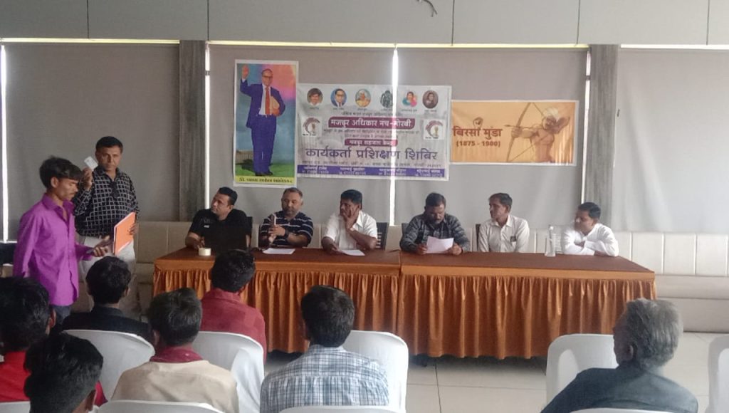 ટંકારા: તારીખ 28-29 માર્ચના દિવસે બે દિવસીય મિટિંગનું આયોજન ટંકારામાં ખજૂરા હોટેલમાં પશ્ચિમ ભારત મજુર અધિકાર મન્ચ દ્વારા કરવામાં આવ્યું હતું જેમાં મજૂરોને પડતી સમસ્યા, મજૂરોના હક અધિકાર અને મજૂરોને મળતા ફાયદાઓ વિસે માહિતી આપવામાં આવી હતી.