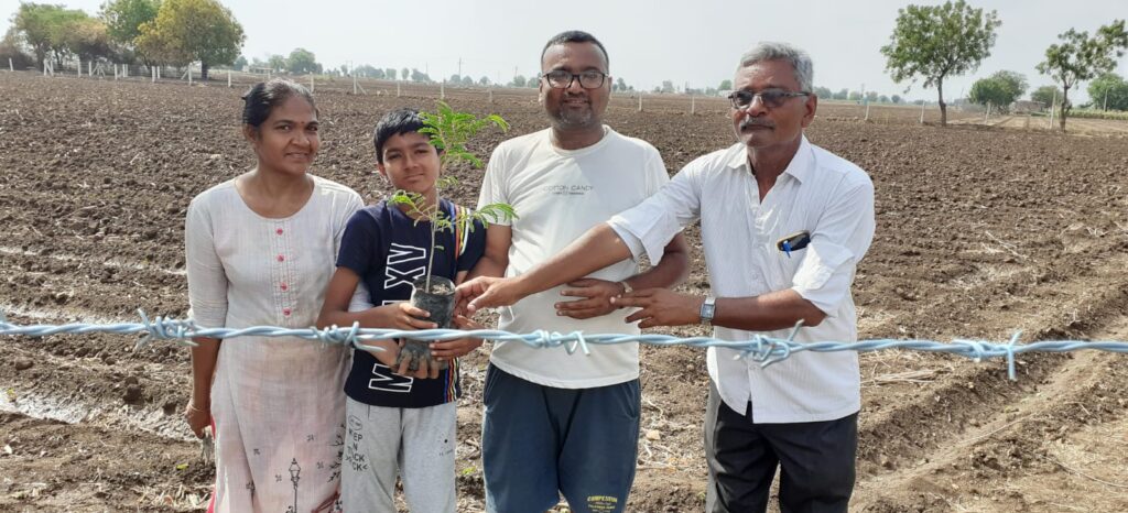 ત્યાર બાદ એમના ગામના (વિશાલ નગર, તાલુકો. માળિયા મિયાણા) ખેતરમાં પણ શેઢે શેઢે પ્રકાશભાઈના પિતાજી અને એમના મમ્મીની ઉંમર મુજબ 70+70 = 150 વૃક્ષો વાવવાનું પ્લાનિંગ છે. નીચે જણાવેલ યાદી સિવાયના ફળાઉ, છાયા વાળા,ઔષધિ પ્રકારના અન્ય વૃક્ષો વવાવવાનું આયોજન છે