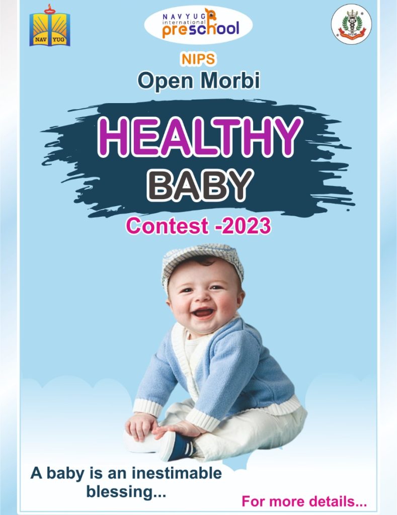 આ કોન્ટેસ્ટમાં દોઢ થી ત્રણ વર્ષના બાળકો ભાગ લઈ શકે છે. નાના બાળકનાં સ્વાસ્થ્ય પ્રત્યેની જાગૃતિને લઈને તેને પ્રોત્સાહિત કરવા ઉપરાંત જાગૃત માતા પિતા માટે નવયુગ ઇન્ટરનેશનલ પ્રિસ્કૂલ સ્કૂલ ૧ જાન્યુઆરી ૨૦૨૩ ના રોજ આયોજન કરેલ છે હેલ્ધી બેબી કોન્ટેસ્ટ-૨૦૨૩ જેમાં બેસ્ટ હેલ્થી બેબી, બેસ્ટ ડ્રેસ બેબી, બેસ્ટ ફોટોજેનીક બેબી અને સુપર મોમ એન્ડ ડેડ આવી ૪ અલગ અલગ કેટેગરી ભાગ લેનારાઓ માટે રાખવામાં આવી છે જેમાં દરેક કેટેગરીના બેસ્ટ ત્રણ વિજેતાઓ ઘોષિત કરવામાં આવશે ઉપરાંત દરેક ભાગ લેનાર બાળકને એક સ્પેશિયલ ગિફ્ટ આપવામાં આવશે…