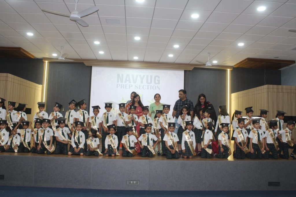 નવયુગ પ્રેપ સેક્શનમાં સિનિયર કેજીમાં અભ્યાસ કરતા બાળકો પોતાનું પ્રીસ્કુલ એજ્યુકેશન પૂરું કરતા હોય તેવા દરેક બાળકોને જે રીતે યુનિવર્સિટીમાં પદવીદાન યોજાય છે તે જ રીતે થીમ થી બાળકોને હેટ તેમજ પ્રી સ્કૂલ ગ્રેજ્યુએશન પદવી એનાયત કરી હતી તેમજ સાથે સાથે તમામ ભૂલકાઓએ અવનવી કૃતિઓ રજૂ કરી શ્રોતાઓને મંત્રમુક્ત કર્યા હતા.