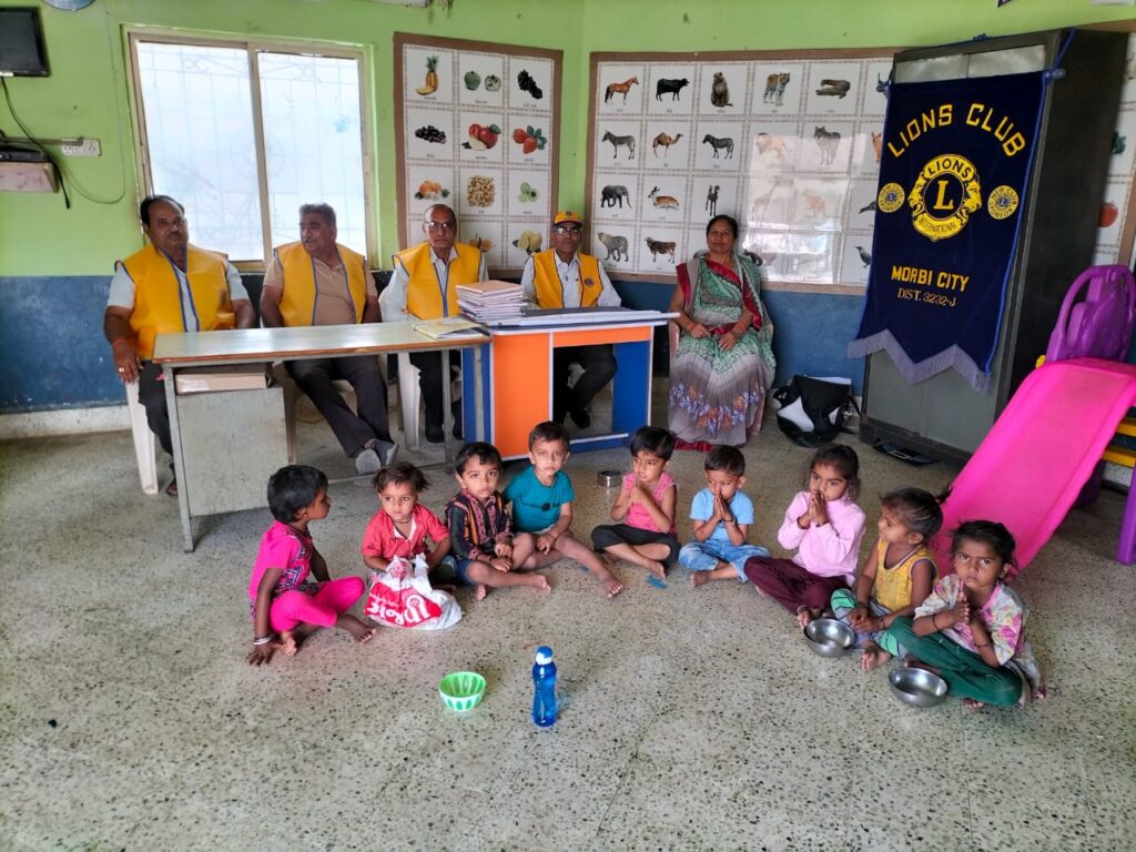 લાયન્સ કલબ ઓફ મોરબી સીટી દ્વારા કાયમી કુપોષિત બાળકોને પોસ્ટિક આહાર આપવાનો કાયમી પ્રોજેક્ટ છેલા બે વર્ષથી લાયન્સ કલબ ઓફ મોરબી સિટીના સહયોગ દ્વારા સતત ચાલે છે તે ગ્રામ્ય વિસ્તારના કેન્દ્ર ની મુલાકાત લીધી ત્યાંના બાળકોના સારીરીક,માનસિક,અને આરોગ્ય વિષયક બાબતે સંચાલિકા બેન સાથે ચર્ચા કરીનેઆ હંગર પ્રોજેક્ટ માં બાળકોના વજન અને ઉંચાઈ માપવામાં આવ્યા હતા ,અને તેમને યોગ્ય માર્ગ દર્શન આપવામાં આવ્યું.