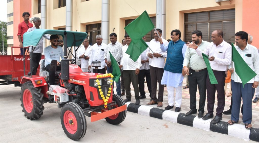 આ પ્રસંગે રાજ્યમંત્રી બ્રિજેશભાઈ મેરજા તેમજ ઉપસ્થિત મહાનુભાવોના હસ્તે ગ્રામ પંચાયતોને ૧૫માં નાણાપંચની ગ્રાન્ટ માંથી ૩૬ લાખથી વધુના ખર્ચે ૬ ટ્રેકટર તેમજ ટ્રોલી, ૧૧.૫ લાખની કિંમતના એક જેટિંગ મશીનને લીલી ઝંડી આપી પ્રસ્થાન કરવામાં આવ્યું હતું.