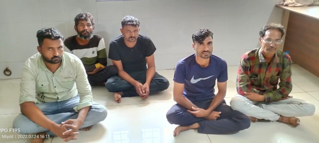 (૧) હનીફભાઇ જુમાભાઇ કાળવા (૨) હેમતભાઇ વાલાભાઇ ચૌહાણ (૩) પ્યારૂભાઇ દાદુભાઇ પરમાર (૪) હુશેનભાઇ અલીભાઇ કાથરોટીયા (૫) જીતેષભાઇ વાલાભાઇ ચૌહાણ સહિતના પાંચ જુગારીને જાહેરમા જુગાર રમતા મળી આવતા રોકડ રૂ.૩૦૩૦૦/- ના મુદામાલ સાથે ઝડપી કાયદેસરની કાર્યવાહી કરેલ છે.