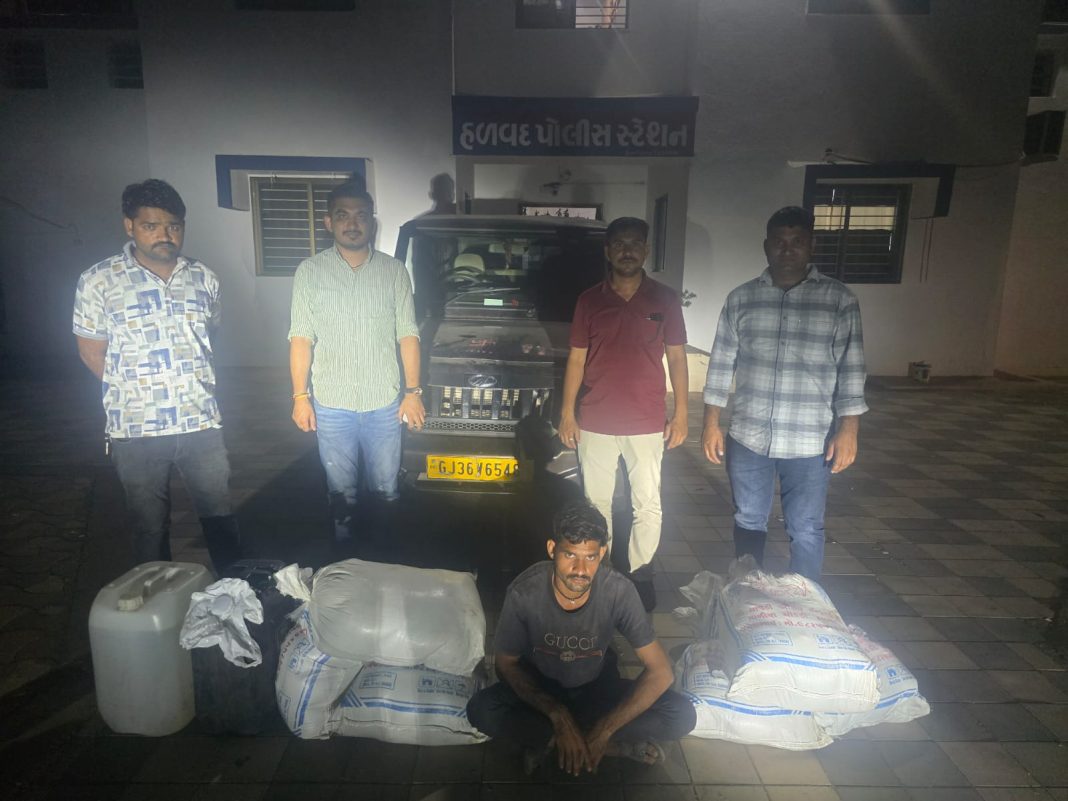 હળવદના ધુળકોટ ગામે બોલેરો ગાડીમાંથી દેશી દારૂના જંગી જથ્થા સાથે એક ઝડપાયો