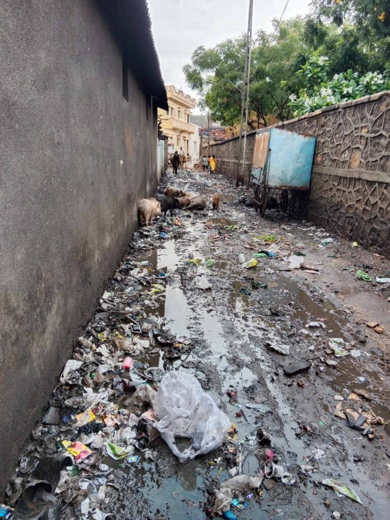 હળવદની રાજોધદરજી હાઈસ્કૂલ પાછળ નાસ્તા ગલી વિસ્તારમાં ગંદકીના ગંજથી રહીશો અને વેપારીઓમાં રોષ