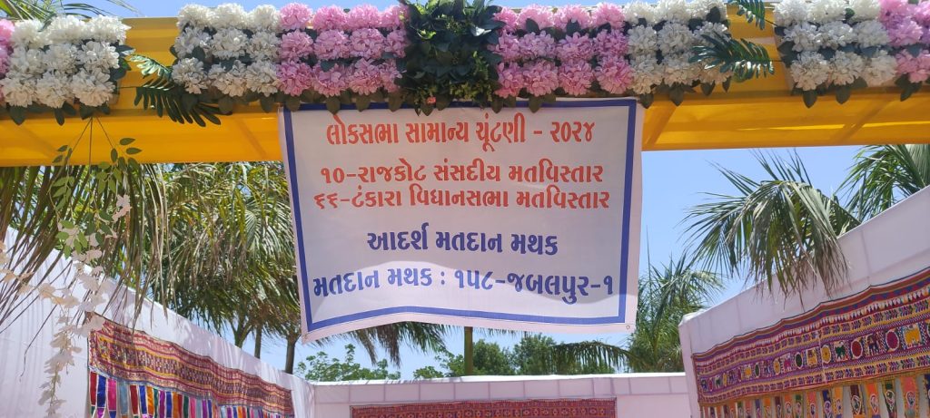 નજર કરો ને મનડું મોહી લે તેવું મતદાન મથક એટલે ટંકારાના જબલપુર ગામનું મતદાન મથક હો ! ગુજરાતની ધરોહર અને ગ્રામીણ ભાતીગળ સંસ્કૃતિને માંડવડે મઢીને મોરબીમાં ૬૬-ટંકારા મતવિસ્તારમાં આવેલ જબલપુર મતદાન મથકને સાજ શણગાર આપી મનમોહક બનાવવામાં આવ્યું છે. જ્યાં મતદારને આવતા જ એવી અનુભૂતિ થાય કે કાં તો કોઈના લગ્નના મંડપમાં આવી ગયા અને કાં તો છે આ કોઈ ગ્રામ્ય સંસ્કૃતિની ઝાંખી કરાવતું મ્યુઝિયમ.
