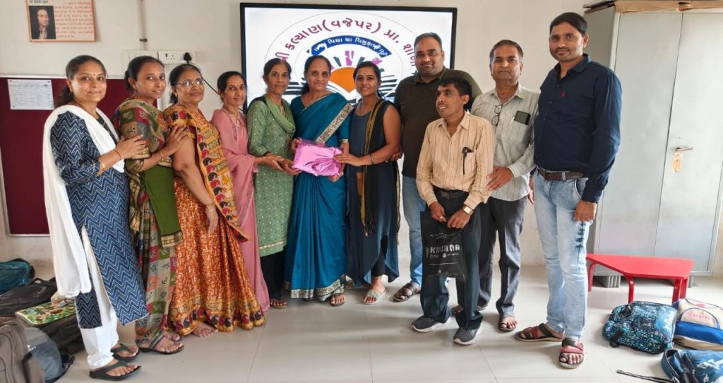 ત્યારે શહેર વિસ્તારની કલ્યાણ (વજેપર) પ્રાથમિક શાળાના શિક્ષિકા શારદાબેન છગનભાઈ કાલરીયા તા.31/08/2023 ના રોજ વય મર્યાદાના કારણે નિવૃત થતા શાળા પરિવાર દ્વારા તેમને ભાવભરી વિદાય આપવામાં આવી. શાળાના મુખ્ય શિક્ષિક તેમજ તમામ શાળા સ્ટાફ અને વિદ્યાર્થી પરિવાર દ્વારા તેમના શૈક્ષણિક કાર્યફલકને બિરદાવી બહેનને વિદાયમાન સન્માન અર્પિત કરવામાં આવ્યું. શ્રીફળ, પળો, શાલ અને સન્માનપત્ર અર્પિત કરી શાળા પરિવાર દ્વારા વિદાય શુભેચ્છા પાઠવવામાં આવી.બહેન દ્વારા પોતાની શૈક્ષણિક સફર અંતર્ગતના અનુભવો રજુ થયા.બહેન તરફથી તેમના વિદાયમાન સન્માન પ્રસંગે શાળાના બાળકોને નાસ્તો આપવામા આવ્યો હતો.
