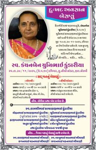 મોરબી નીવાસી કંચનબેન ચુનિભાઈ કુંડારીયાનુ દુઃખદ અવસાન; ગુરુવારે બેસણું
