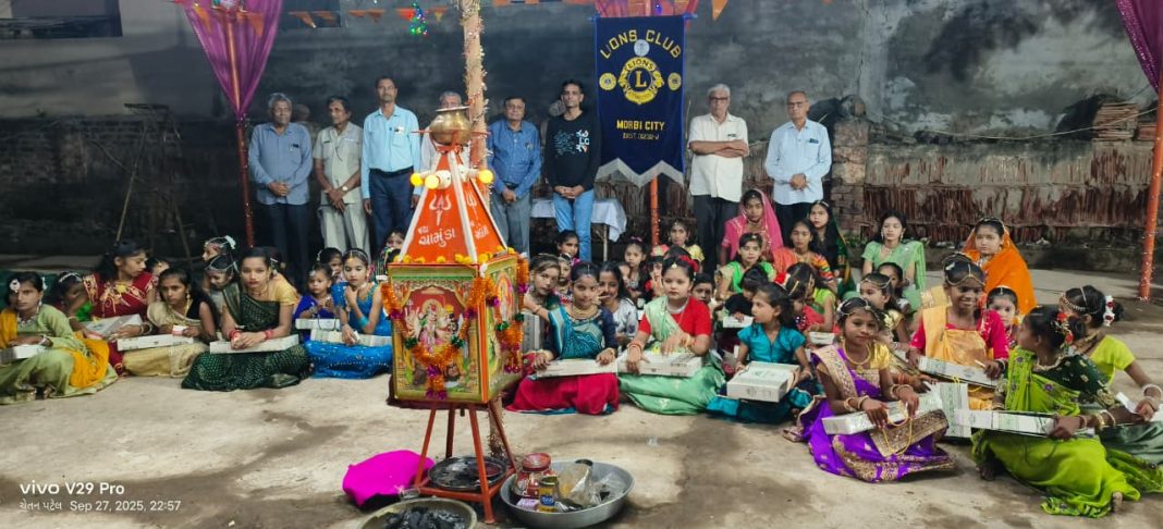 લાયન્સ કલબ ઓફ મોરબી સીટી દ્વારા નવરાત્રિમાં ગરબે ઘુમતી બાળાઓને લ્હાણી વિતરણ કરાઈ