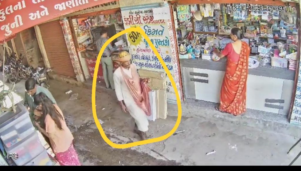 મળતી માહિતી મુજબ મોરબી શહેરમાં કાયદો અને વ્યવસ્થાની સ્થિતિ કથળી રહી છે ચોર લૂંટારાઓ બેફામ બન્યા છે જાણે ચોર લૂંટારાઓને પોલીસનો ભય રહ્યો જ ન હોય ત્યારે આજે સવારે ૧૦:૪૫ કલાકે મોરબીના શનાળા રોડ પર આવેલ માધવ માર્કેટમાં ત્રીજા માળે ઉમા ફોટોમા સાધુના વેશ એક લુટારો આવ્યો હતો જેને એક વ્યક્તિના હાથમાંથી સોનાની વિટી ઝડપી અને નાશી ગયો હતો. આ ઘટનાના સીસીટીવી ફુટેજ પણ હાલ વાઈરલ થઈ રહ્યા છે. જેમાં સાધુના વેશમાં આવેલ એક ઈસમ સોનાની વિટી ઝડપી નાશી જાય છે અને રસ્તા પોતે ધારણ કરેલ સાધુના વસ્ત્રો કાઢતો સીસીટીવી ફૂટેજમાં નઝરે પડી રહ્યો છે.