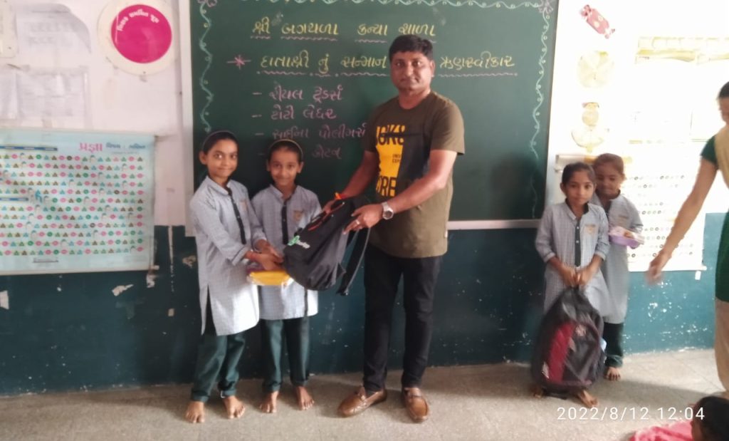 મોરબી તાલુકાની બગથળા કન્યા શાળામાં અભ્યાસ કરતી આશરે 80 જેટલી વિદ્યાર્થીનીઓને REAL TREADERS(આશિષ ભાઈ કગથરા)તરફથી યુનિફોર્મ, TOTO LEATHER ( કમલેશભાઈ વાંસદડીયા) તરફથી સ્કૂલ બેગ, SHYANA POLYMERS (જેન્તી ભાઈ પેથાપરા), ક્રાંતિ કોટન(મહેન્દ્રભાઈ કાવર) તરફથી લંચ બોક્સ,એપલ હોસ્પિટલ (ડો,અમિત ગામી)-ABO લેબોરેટરી (ડો.પંકજ વડનગરા)-લાઈફ લાઇન હોસ્પિટલ(ડો.ઈશાન કંઝારીયા) તરફથી શૈક્ષણિક કીટ દરેક વિદ્યાર્થીનીઓને અર્પિત કરવામાં આવેલ છે.