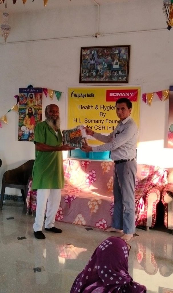 મોરબી: એચ. એલ સોમાણી ફાઉન્ડેશન અને હેલ્પએજ ઇન્ડિયા દ્વારા વાંકાનેરના સરતાનપર અને વઘાસિયા તથા મોરબી તાલુકાના સિરામિકસિટી, ભડિયાદ, જવાહરનગર, જાંબુડિયા, લાલપર, મકનસર, પ્રેમજી નગર, પાનેલી, લઘધિરપુર, ઉચી માંડલ, નીચી માંડલ, ઘૂટુ, પીપળી, બેલા અને રંગપર ગામમાં 380 આરોગ્ય અને સ્વચ્છતા કિટોનું વિતરણ કરવામાં આવ્યું.જેમાં 55 વર્ષ થી વધુ વયના વડીલોના સ્વાસ્થ્ય વિશે જાગૃત લાવવાના હેતુ થી કરવામાં આવ્યું હતું, જેઓ આર્થિક રીતે તેમની જરૂરિયાતો ને પહોંચી વળવા અને તેમના સ્વાસ્થ્યની કાળજી લેવા માટે સક્ષમ નથી.