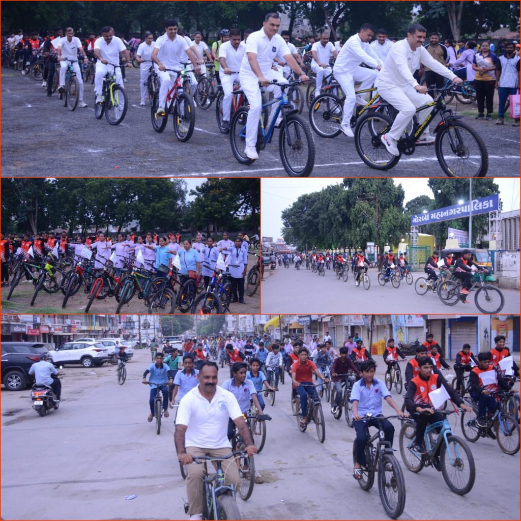 મોરબીમાં ‘ખેલે ભી ખીલે ભી’ ની થીમ સાથે અંદાજિત 7 કિમી લાંબી સાયકલ રેલી યોજાઈ