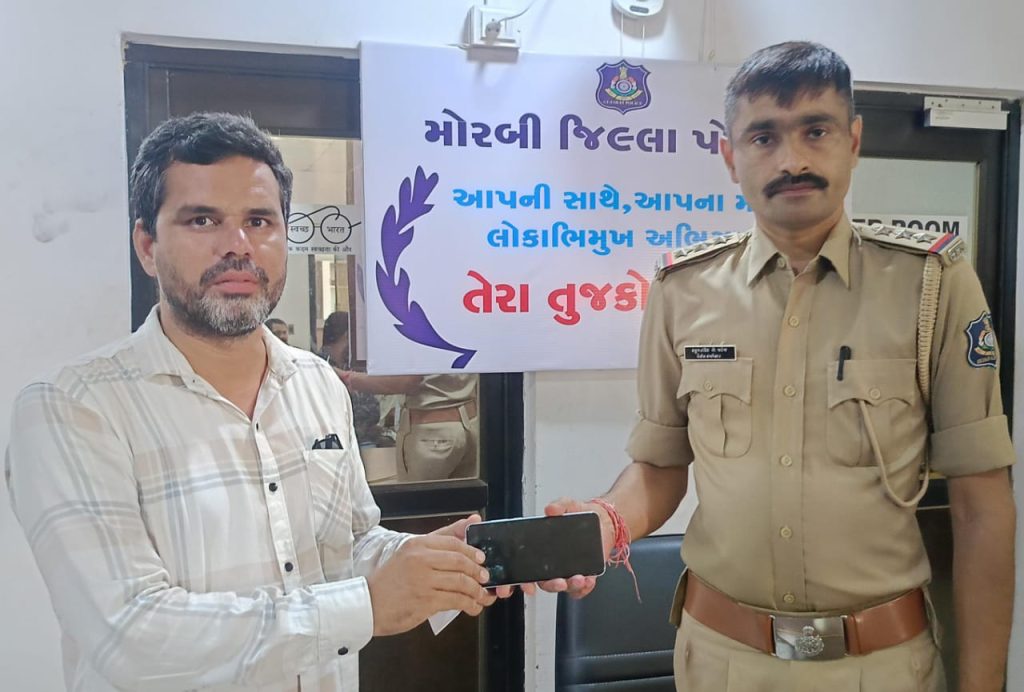 મોરબી: મોરબી સીટી એ ડીવીઝન પોલીસ દ્વારા યોજાયેલ “તેરા તુજકો અર્પણ” કાર્યક્રમ અંતર્ગત “CEIR” પોર્ટલ ના ઉપયોગથી મોરબીમાથી ૫,૧૫,૮૩૩/- ની કિમતના કુલ-૨૫ ખોવાયેલ મોબાઈલો તથા બે બિન વારસી મોટરસાયકલ શોધી કાઢી અરજદારોને પરત કરવામાં આવ્યા હતા.