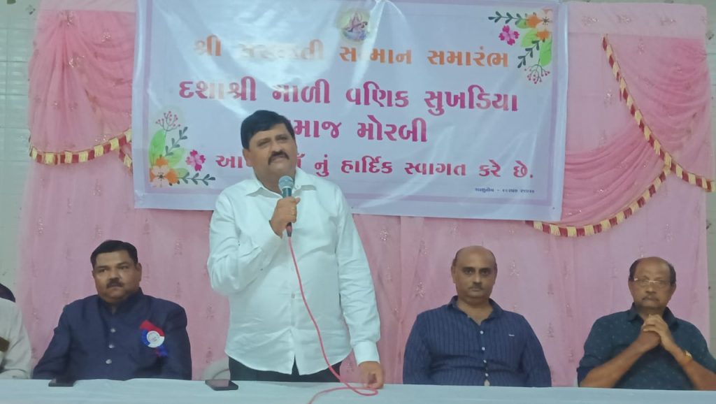 મોરબી: ગઈ કાલ તા. ૦૧-૦૭-૨૦૨૩ ને શનીવાર ના રોજ મોરબીના નવા ડેલા રોડ પર આવેલા શ્રી વિશાશ્રી માળી વણીક જ્ઞાતિની વાડી ખાતે મોરબી સુખડીયા સમાજના વિદ્યાર્થીઓનો દ્રિતીય સરસ્વતી સન્માન સમારોહ યોજાયો હતો જેમાં તેજસ્વી તારલાઓને શીલ્ડ એનાયત કરવામાં આવ્યા હતા. તેમજ વિદ્યાર્થીઓને નોટબુક વિતરણ કરવામાં આવી. અને તપસ્વીઓ, દાતાઓનું બહુમાન કરવામાં આવ્યું હતું.