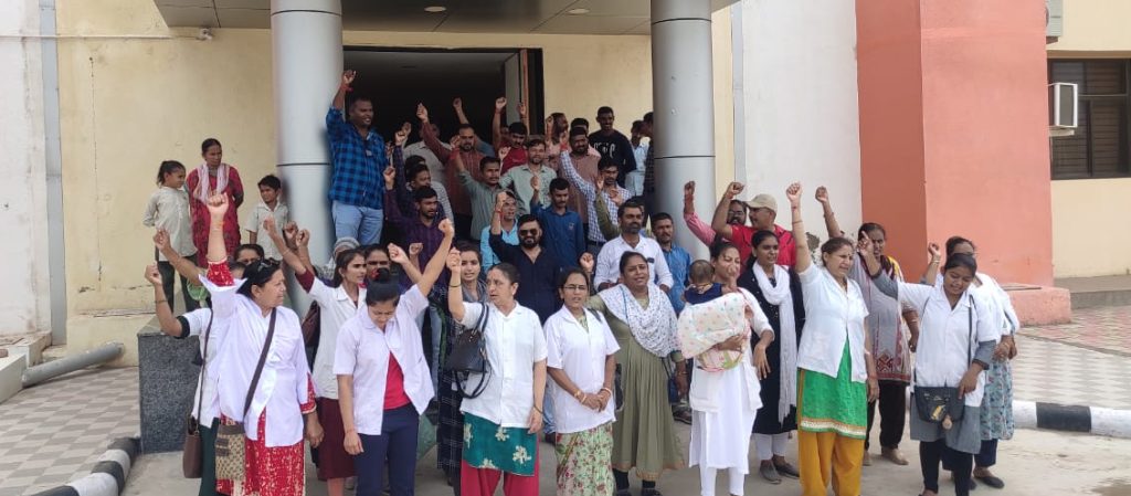 આરોગ્ય કર્મચારીઓ હડતાલનું શસ્ત્ર ઉગામી ત્રણ પડતર પ્રશ્નોના ઉકેલની માંગ સાથે આજથી અચોક્કસ મુદતની હડતાલ ઉપર ઉતરી ગયા છે.250 જેટલા આરોગ્ય કર્મચારીઓએ હડતાલ ઉપર ઉતરી સૂત્રોચ્ચાર સાથે વિરોધ પ્રદર્શન કર્યું હતું.