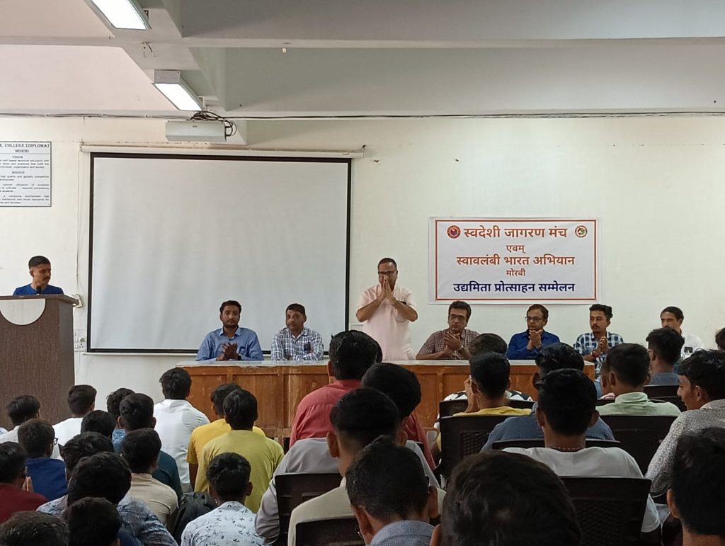 મોરબી: સ્વાવલંબી ભારત અભિયાનએ વિદ્યાર્થી અને યુવાનોને ઉદ્યમિતા સ્વરોજગાર પ્રત્યે જાગૃત કરવાનું રાષ્ટ્રવ્યાપી અભિયાન છે. આ અભિયાન અંતર્ગત મોરબીની એલ.ઈ. પોલીટેકનિક કોલેજ ખાતે “ઉદ્યમીતા પ્રોત્સાહન સંમેલન”નું આયોજન કરવામાં આવ્યું હતુ.