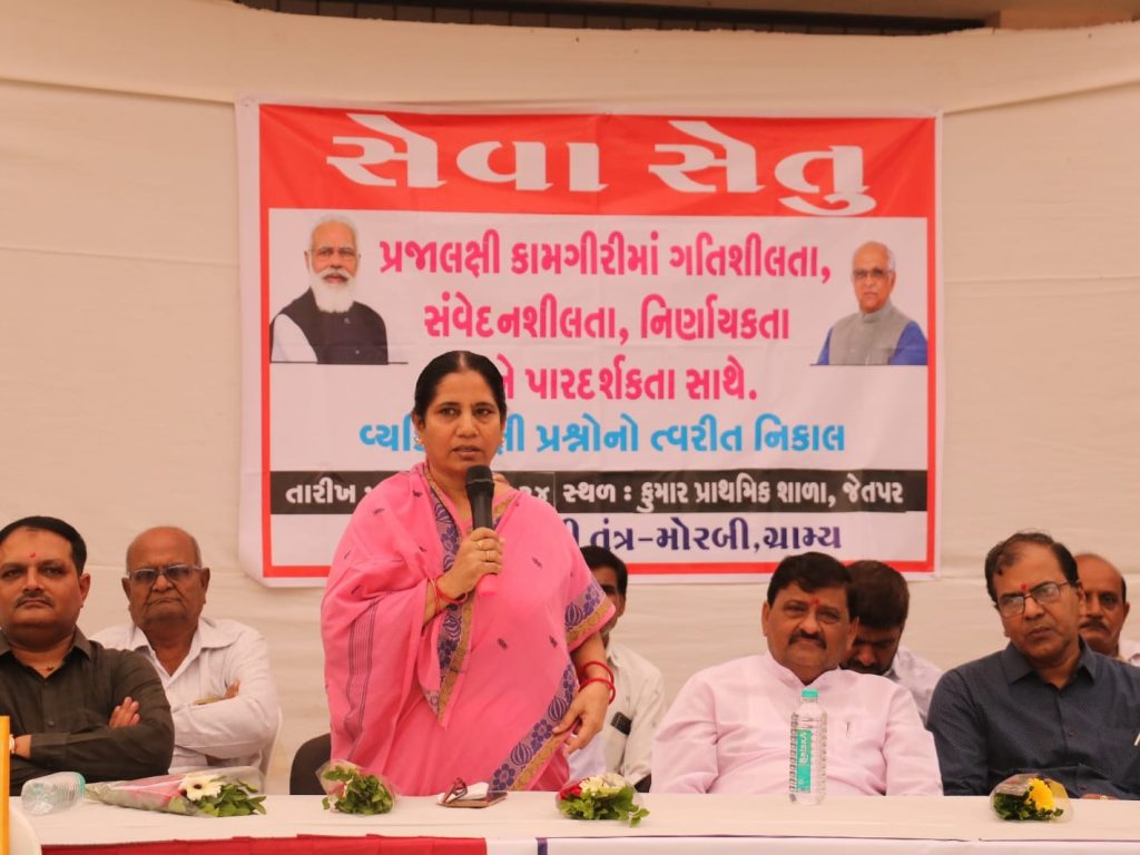 આજે તારીખ ૧૭ સપ્ટેમ્બરથી સમગ્ર રાજ્યમાં સેવા સેતુનો શુભારંભ કરવામાં આવ્યો છે. ત્યારે મોરબી જિલ્લામાં પણ તાલુકા કક્ષાએ તેમજ નગરપાલિકા કક્ષાએ આયોજિત વિવિધ કાર્યક્રમો અન્વયે મોરબીમાં જેતપર ખાતે જિલ્લા પંચાયત પ્રમુખ હંસાબેન પારેઘીની અધ્યક્ષતા હેઠળ સેવા સેતુ કાર્યક્રમનો શુભારંભ કરવામાં આવ્યો હતો.