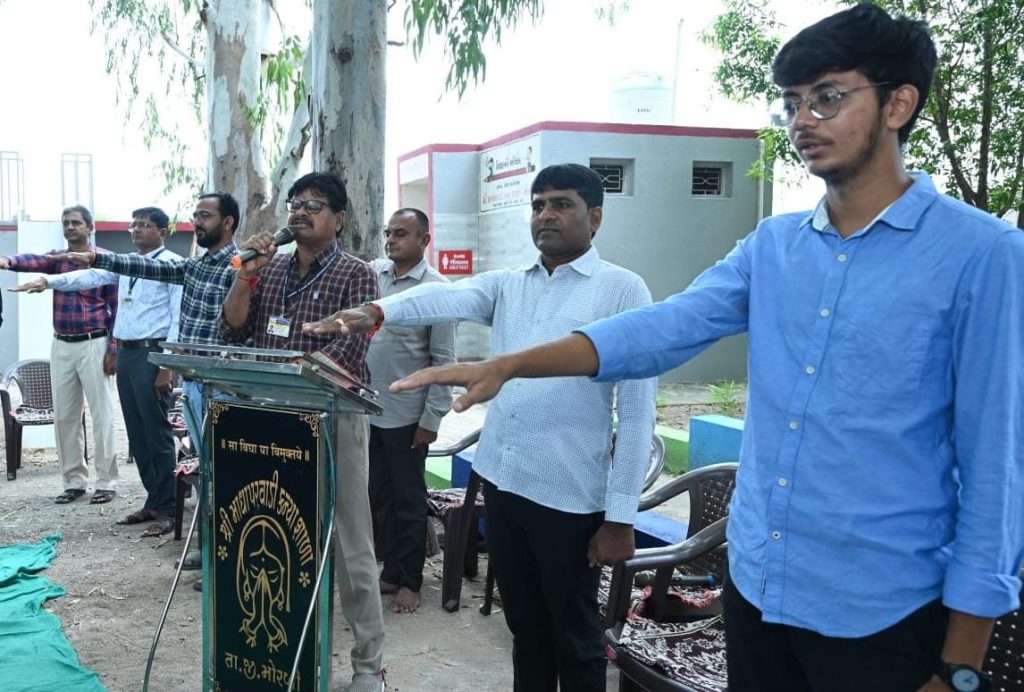 “આપણી શાળા-આપણું તીર્થ બને, આત્મ-અભિમાન બને, રાષ્ટ્ર નિર્માણનો આધાર બને એ માટે માધાપરવાડી કુમાર અને કન્યા શાળામાં ગુજરાત સરકારના પૂર્વ મંત્રી બ્રિજેશભાઈ મેરજાની પ્રેરક ઉપસ્થિતમાં બંને શાળાના 800 જેટલા વિદ્યાર્થીઓ અને શિક્ષકોએ સંકલ્પ લીધો હતો.