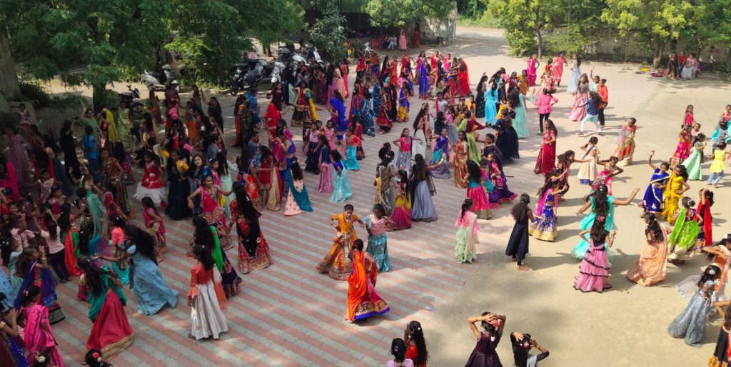 મોરબી નવરાત્રિ એટલે માતૃશક્તિની આરાધના કરવાનો તહેવાર,રાસે રમવાનો અને ગરબે ઘુમવાનો રૂડો અવસર,એમાંય ગુજરાતની આગવી ઓળખ એટલે ગરબો નવરાત્રીમાં ચોરે ચૌટે રાસ ગરબાઓનું આયોજન થતું હોય છે આબાલ-વૃદ્ધ સૌને ગરબે રમવું ગમતું હોય છે,નવરાત્રીમાં ખેલૈયાઓ મન મૂકીને નાચતા હોય છે,દરેક શાળાઓમાં પણ નવરાત્રીની ઉજવણી ધામધૂમ પૂર્વક કરવામાં આવે છે એ અન્વયે મોરબી તાલુકાની માધાપરવાડી શાળામાં 400 વિદ્યાર્થીનીઓએ ટ્રેડિશનલ ડ્રેસમાં સજ્જ થઈ તાલીઓના તાલે દાંડિયાના તાલે ગરબે ઘૂમી જગત જનની જગદંબાની ભક્તિ અને શક્તિથી ઉજવણી કરવામાં આવી હતી અને ધો.3 થી 8 માં વેલ ડ્રેશ અને એક્શનમાં પ્રથમ ત્રણ નંબર પ્રાપ્ત કરનાર 15 પંદર બાળાઓને અને ઓલ રાઉન્ડર પરફોર્મન્સ આપેલ 5 પાંચ બાળાઓને ગિફ્ટ આપી સન્માનિત કરવામાં આવેલ સમગ્ર કાર્યક્રમની વ્યવસ્થા આયોજન શાળાના આચાર્ય