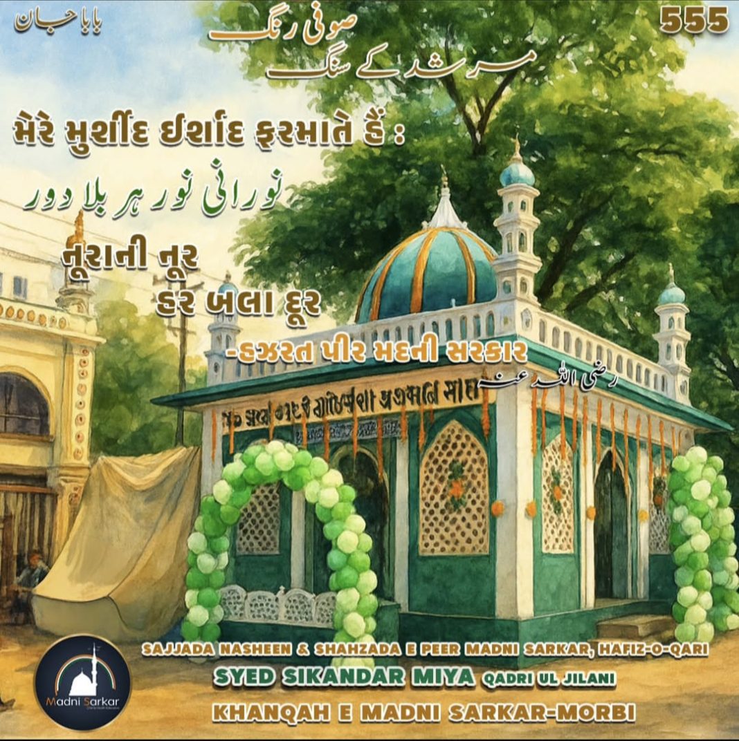 મોરબીમાં તારીખ ૩૦/૧/૨૦૨૬ ને શુક્રવાર ના રોઝ ઉર્ષે હઝરત સૈયદ સિકંદરમીંયા બાવા નો મનાવવામાં આવશે તો તમામ સુન્ની મુસ્લિમ બિરાદરો ને જાણ કરવામાં આવેછે કે મુ. ચાંદ ૧૦ શાબાન સ.હી. ૧૪૪૭ અને અં. તા. ૩૦-૦૧-૨૦૨૬ શુક્રવારે હજરત પીરે તરીકત અલહાજ સૈયદ સિકંદરમીયા બાવા રહેમતુલ્લાહી અલ્યહે ના ઉર્ષે મુબારક શાનો સૌકત થી માનાવવા આવશે તો તેમાં હિન્દુસ્તાન ના મશહૂર મુકર્રીર તકરીર ફરમાવશે અને દારૂલ ઉલૂમ ફૈઝાને મદની સરકાર મા સ્ટુડન્ટ બાળકો ને ઈનામ અને ઈકરામ આપીને હોસલા બુલંદ કરવા મા આવશે, તો તમામ હજરાત આ ઉર્ષે સિકંદરી મા શામીલ થય સિલસિલો કાદરીયાહ જીલ્લાનીયાહ ને ફૈઝાન થી માલામાલ થઈ સવાબે દારૈન હાંસીલ કરશો.