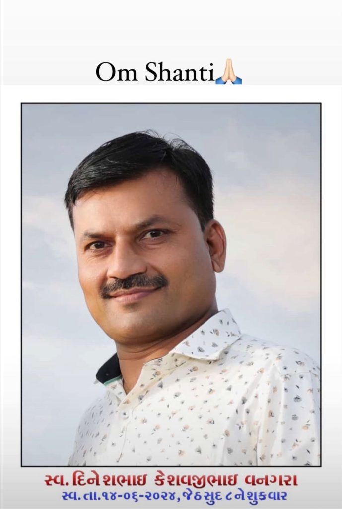 મોરબી: મૂળ માળિયા (મી) તાલુકાના તરઘરી ગામે રહેતા અને હાલ મોરબી નિવાસી દિનેશભાઇ કેશવજીભાઇ વનગરા (ઉ .વ.૪૫) નું તા.૧૪-૦૬-૨૦૨૪ ને શુક્રવારના રોજ દુઃખદ અવસાન થયેલ છે પ્રભુ તેમના દિવ્ય આત્માને શાંતિ આપે એજ પ્રાર્થના.