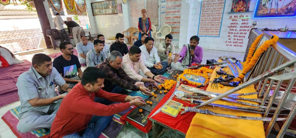 મોરબી પરશુરામ યુવા ગ્રુપ અને વિશ્વ હિન્દુ પરિષદ બજરંગ દળ અને દુર્ગા વાહિની દ્વારા ગાયત્રી મંદિર ખાતે શસ્ત્ર અને શાસ્ત્ર પૂજન કરાયું