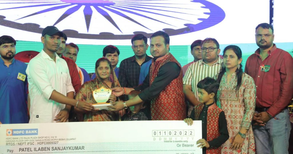 પાટીદાર નવરાત્રી મહોત્સવમાં શહીદ જવાનોનાં વધુ ચાર પરીવારને એક -એક લાખ રૂપિયા સહાય ચુકવવામાં આવી