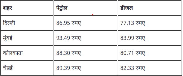 દેશના 4 મોટા મહાનગરોમાં નવી કિંમતો