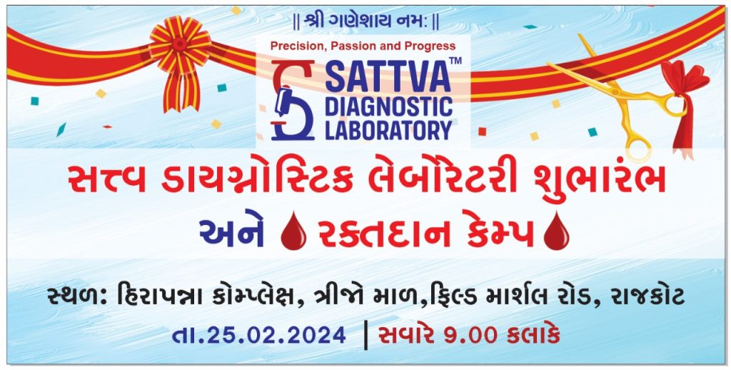 મોરબીના ડોકટર દ્વારા રાજકોટ ખાતે બ્લડ ડોનેશન કેમ્પ સાથે સત્ત્વ ડાયગ્નોસ્ટીક લેબોરેટરીનો શુભારંભ થશે