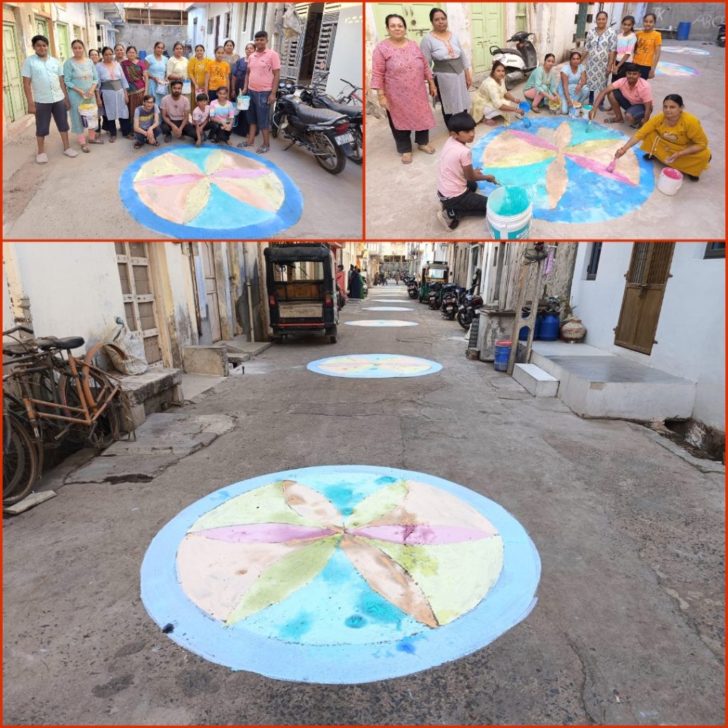 મોરબીનાં વાઘપરા વિસ્તારની મહિલાઓએ અને બાળકોએ પોતાની આખી શેરીમાં રંગોથી રંગોળી કરી અને ભગવાન રામ પ્રત્યેની ભાવના પ્રગટ કરી
