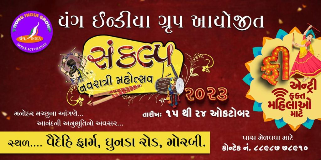 યંગ ઇન્ડિયા ગ્રુપ દ્વારા વૈદેહી પાર્ટી પ્લોટમાં સંકલ્પ નવરાત્રિનું આયોજન : તમામ બેહનો માટે ફ્રી એન્ટ્રી