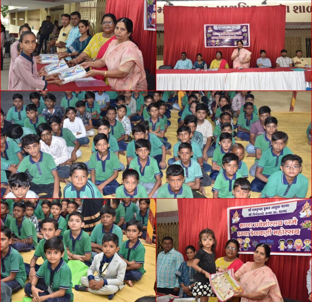 આ કાર્યક્રમ અંતર્ગત રામકૃષ્ણ તા. શાળા ખાતે વિવેકાનંદ (ક) પ્રા.શાળા, વેજીટેલબ, ભીમસર પ્રા. શાળા અને રામકૃષ્ણ તા. શાળામાં આંગણવાડી ખાતે ૧૦ કુમાર અને ૧૦ કન્યા મળી ૨૦ બાળકો, બાલવાટિકામાં ૨૮ કુમાર અને ૩૭ કન્યા મળી ૬૫ બાળકો અને ધોરણ ૧ માં ૪૦ કુમાર તથા ૫૩ કન્યા મળી ૯૩ બાળકોને પ્રવેશ આપવામાં આવ્યો હતો. જ્ઞાન જ્યોતિ વિદ્યાલય ખાતે ધોરણ ૯ માં ૬૭ કુમાર અને ૧૦૭ કન્યા મળી ૧૭૪ વિદ્યાર્થીઓ અને એન.જી. વિદ્યાલય ખાતે ૩૯ કુમાર અને ૨૪ કન્યા મળી ૬૩ વિદ્યાર્થીઓને પ્રવેશ આપવામાં આવ્યો હતો. જે અન્વયે આંગણવાડી, બાલવાટિકા અને ધોરણ ૧ તથા ૯ માં મળી કુલ ૪૧૫ બાળકોએ અનેરા ઉત્સાહ અને ઉમંગે સાથે શાળામાં પ્રવેશ મેળવ્યો હતો.