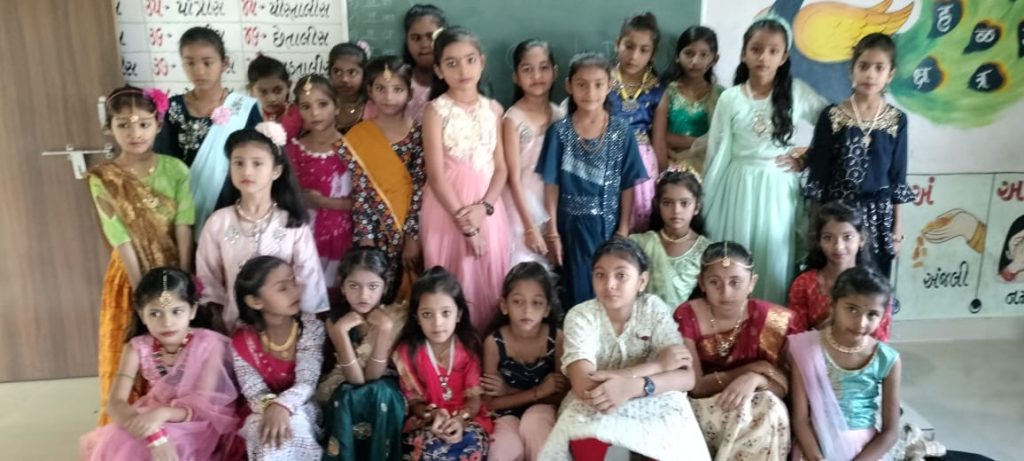 પરંતુ જ્યારે આજ વસ્તુને ઉજવણી શાળામાં કરવામાં આવે છે ત્યારે નાનાં નાના ભૂલકાઓ. નાની બાળાઓ શિક્ષકો સાથે ગરબા લે છે ત્યારે આનંદ અનેરો બને છે. આવી જ ઉજવણી આજ રોજ શાળામાં કરવામાં આવે જેમાં બાળકો વિવિધ ટ્રેડિશનલ ડ્રેસમાં મનમોહક મોહી લીધું હતું. વિવિધ ડ્રેસ સ્પર્ધા , સુંદર ગરબા ગાવામાં નંબર આપ્યા હતા , સાથે સાથે બાળકોને મનોજભાઈ મકવાણા દ્વારા બાળકોને દાબલીનો નાસ્તો કરાવી બાળકોનો ઉત્સા વધાર્યો હતો.સમગ્ર આયોજનને સફળ બનાવવામાં સમગ્ર શિક્ષકગણ નો ફાળો અમૂલ્ય હતો. આ કાર્યક્રમને શાળાના આચર્યા દ્વારા બધા જ બાળકોને અભિનદન આપ્યા હતા.
