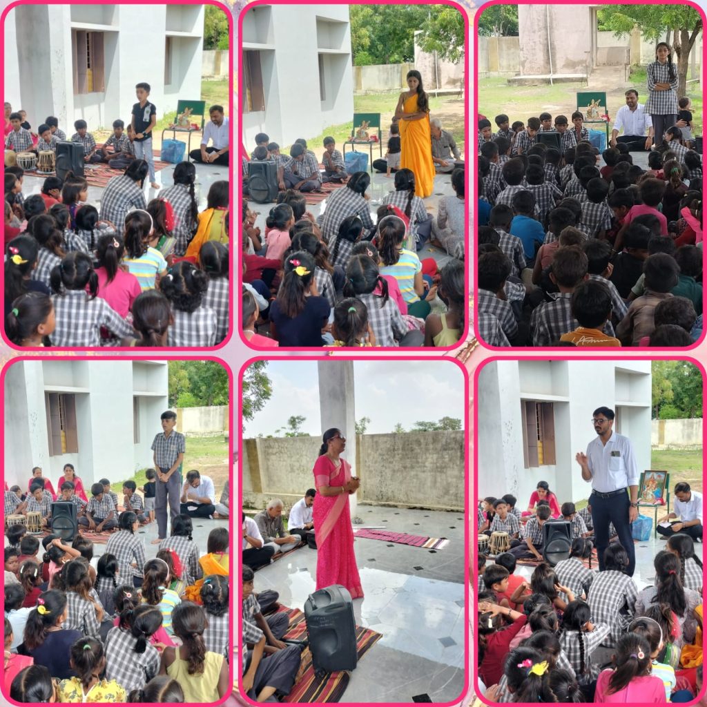 શાળામાં ગુરુપૂર્ણિમાની ઉજવણીના ભાગરૂપે શાળાના બાળકો દ્વારા ગુરુના મહત્વ વિશે સ્પીચ આપવામાં આવી તેમજ ગુરુને વંદના કરતું ભજન રજૂ કર્યું, શાળાના શિક્ષકો આદ્રોજા કેતનભાઈ અને કાવર માયાબેન દ્વારા બાળકોને એમના જીવનમાં ગુરુનું શુ મહત્વ હોય તેના વિશે ખૂબ જ સરસ માર્ગદર્શન આપ્યું સાથે શાળાના આચાર્ય અલ્પેશભાઈ પુજારાએ ગુરુપૂર્ણિમાના મહત્વ વિશે વાત કરી અને આજના આ મહત્વના દિવસે શાળાના તમામ બાળકો દ્વારા “ગુડ મોર્નીગ” ના બદલે સમગ્ર દિવસ દરમિયાન “જય ગુરુદેવ”નું સંબોધન કરવામાં આવ્યું. આ સાથે જ ભારત વિકાસ પરિષદ તરફથી ભાગ લેનાર તમામ બાળકોને પ્રમાણપત્ર આપવામાં આવ્યા.
