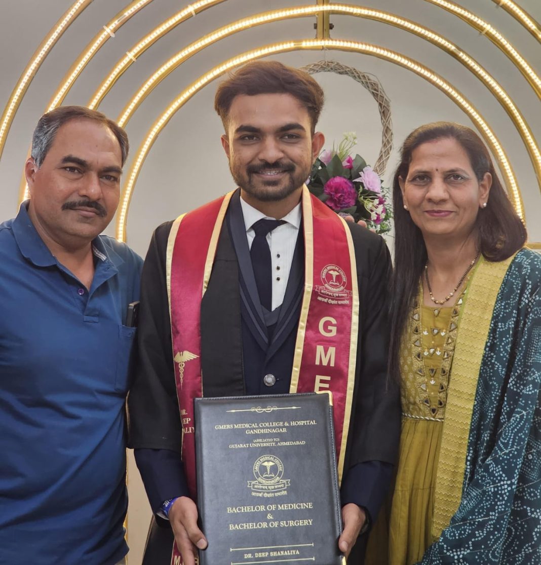 ડોકટર બનીને લોકોની સેવા કરવાનું સ્વપ્ન સેવી એ સ્વપ્ન સાકાર કરી માળીયા તાલુકાના રાસંગપર ગામના વતની દીપ શનાળિયાએ ડોકટરની ડિગ્રી મેળવી છે. કહેવાય છે કે, ઇરાદો મજબૂત હોય ત્યારે મંજિલ મેળવવા માટે કોઈપણ પરિસ્થિતિ નડતી નથી.