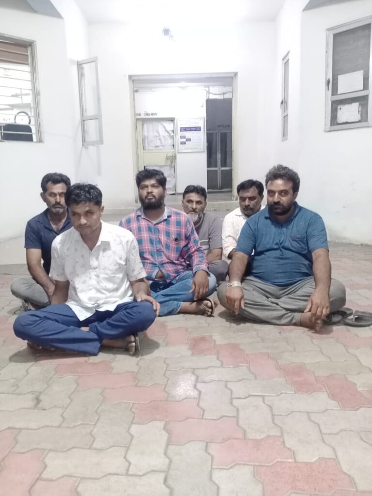ટંકારા પોલીસ મથકના પીએસઆઇ બી.ડી.પરમાર તથા સર્વેલન્સ સ્કવોર્ડને ગતરાત્રે પેટ્રોલીંગ દરમિયાન બાતમી મળી હતી કે, ટંકારાના કલ્યાણપર ગામે કેટલાક શખ્સો જુગાર રમી રહ્યા છે. આ બાતમીના આધારે ટંકારા પોલીસ સ્ટાફે કલ્યાણપર ગામે રેડ કરી હતી હતો અને કલ્યાણપર ગામે મેઈન બજારમા સ્ટ્રીટ લાઈટના અંજવાળે જાહેરમા જુગાર રમતા આરોપીઓ કીશોરભાઇ જેરાજભાઇ દેત્રોજા, ભરતભાઇ વાધજીભાઇ ઝાપડા, કેતનભાઇ જેરાજભાઇ ઢેઢી, સલીમભાઇ દાઉદભાઇ ભાણુ, દીલાવરભાઇ મુસાભાઇ ભાણુ, કાદરભાઇ હસનભાઇ મકવાણાને રોકડા રૂ 15170 ના મુદ્દામાલ સાથે ઝડપી લીધા હતા.