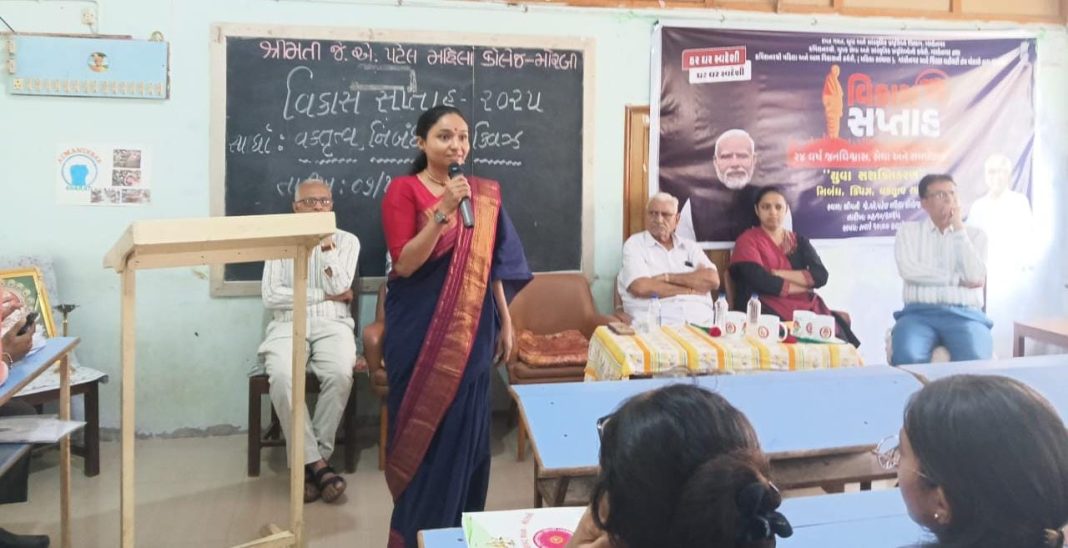 મહિલા અને બાળ વિકાસ વિભાગ તથા યુવા રમત ગમત અને સાંસ્કૃતિક પ્રવૃત્તિ વિભાગ દ્વારા મોરબીમાં શ્રીમતી જે.એ.પટેલ મહિલા કોલેજ ખાતે ‘વિકાસ સપ્તાહ’ –૨૦૨૫ યુવા સશક્તિકરણ કાર્યક્રમ યોજાયો હતો.