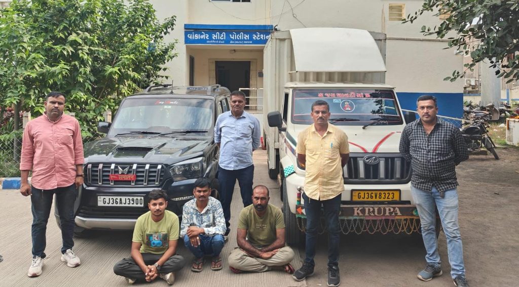 વાંકાનેર – મોરબી હાઈવે પર બોલેરો ગાડીના ચોર ખાનામાંથી બિયરનો જંગી જથ્થો ઝડપાયો: ત્રણ ઈસમોની અટક