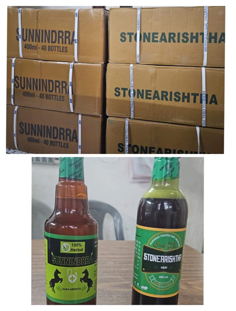 વાંકાનેર તાલુકા સર્વેલન્સ ટીમ પેટ્રોલીગમા હોય તે દરમ્યાન સરતાનપર રોડ સેન્સો ચોકડી ઉપરથી મારૂતી સુઝુકી કંપનીની ઇકો કાર્ગો ગાડી રજી નં.GJ-36-T-8016 નો ચાલક સુરેશભાઇ ચૌહાણ ઉવ.૨૪ ધંધો ડ્રાઇવીંગ રહે.હાલ-નવા જાંબુડીયા, દશામાંના મંદીર પાછળ, ભાડેથી તા.જી.મોરબી મુળ ગામ-ખડીયા તા.માણાવદર જી.જુનાગઢ વાળા કબજામાંથી આયુર્વેદીક હર્બલોની બોટલ (૧) AYURVEDIC PROPRIETARY MEDICINE STONEARISHTHA ASAV 400 ml.HERBAL_TONIC બોટલ નંગ.૧૨૦ તથા (ર) Herbal SUNNINDRRA ASAV-ARISTHA બોટલ નંગ.ર૦૦ ની ઇકકો કારમાં હેરાફેરી કરતા મળી આવતા કુલ બોટલ નંગ-૩૨૦ કી.રૂ.૪૮૦૦૦/-તથા ઇકકો કાર કી.રૂ. ૨,૦૦,૦૦૦/-મળી કુલ રૂ.૨૪૮૦૦૦/- ના મુદામાલ સાથે મળી આવતા સી.આર.પી.સી. કલમ ૧૦૨ મુજબ કબજે કરી કાયદેસર કાર્યવાહી કરી બોટલ કયાંથી મેળવેલ છે.તે અંગે તપાસ હાથ ધરવામાં આવેલ છે.