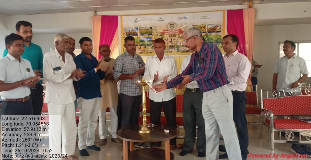 તૃણ ધાન્ય પાકો માટે ખેડૂતોમાં જાગૃતિ વધારવા મિલેટ ડેવલોપમેન્ટ યોજના હેઠળ તાલુકા કક્ષાના મિલેટ મેળાનું આયોજન પટેલ સમાજવાડી વાંકાનેર ખાતે કરવામાં આવ્યું હતું. કૃષિ વિજ્ઞાન કેન્દ્ર ગોરખીજડીયાના કૃષિ વૈજ્ઞાનિકો દ્વારા મિલેટની ઉપયોગિતા સાથે પ્રાકૃતિક કૃષિનું મહત્વ વિશે વિસ્તૃત જાણકારી ખેડૂતોને આપવામાં આવી હતી. સાથે સાથે શિયાળું પાકોની ખેતી પદ્ધતિ વિશે માહિતગાર કરવામાં આવ્યા હતા.